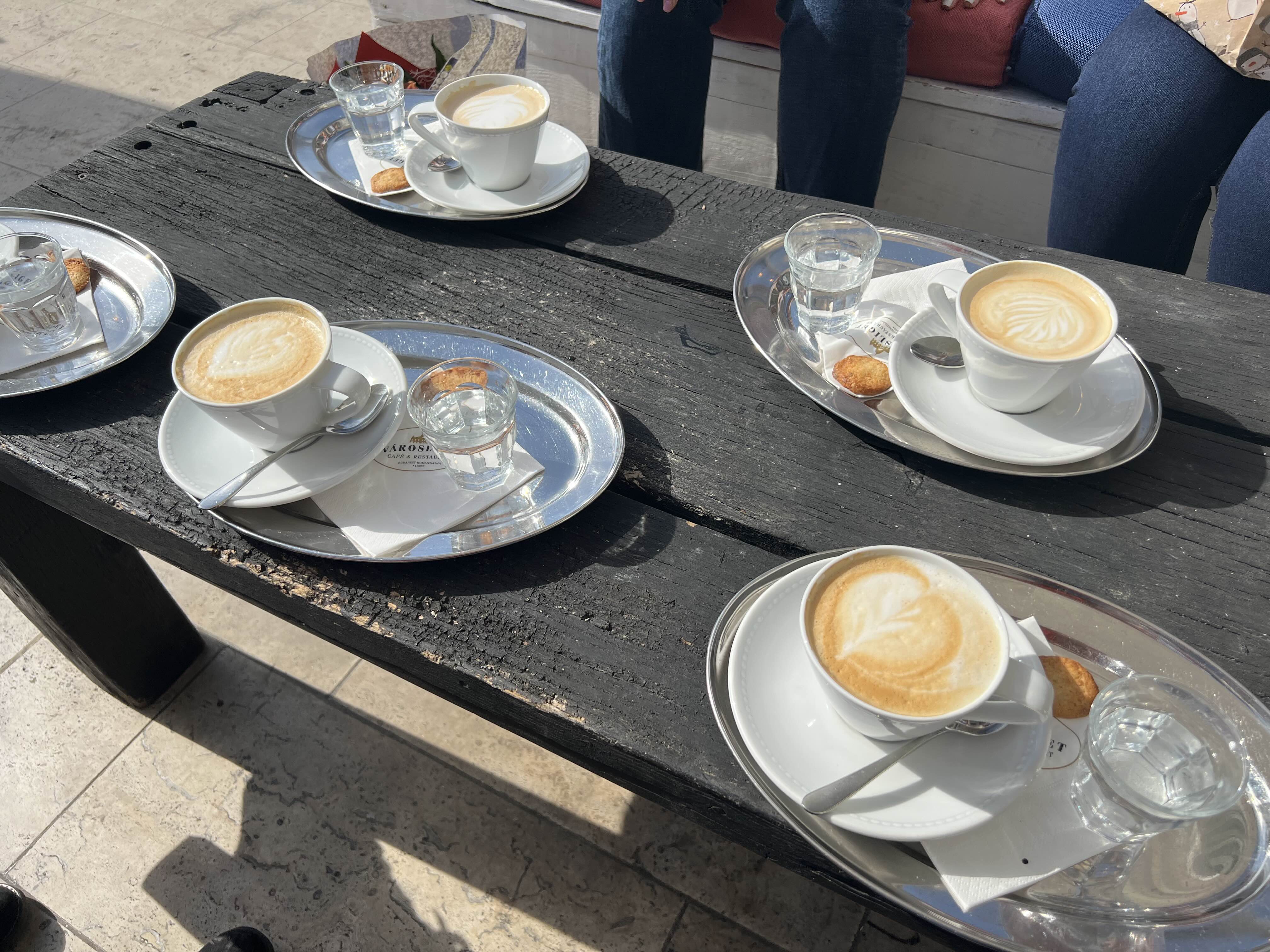 식사 후 날씨가 너무 좋아서 식당에 정중하게 밖에서 커피를 마시라고 부탁했습니다.